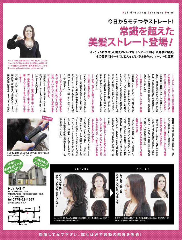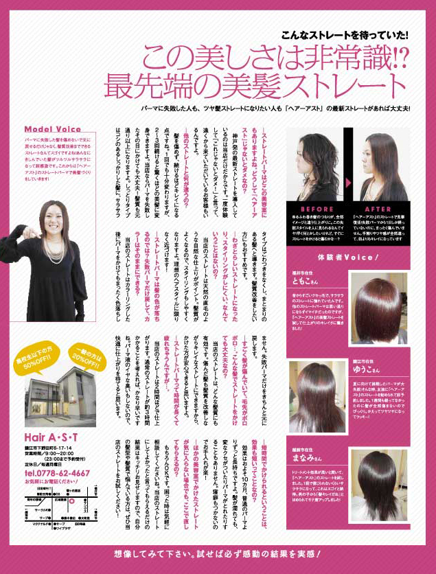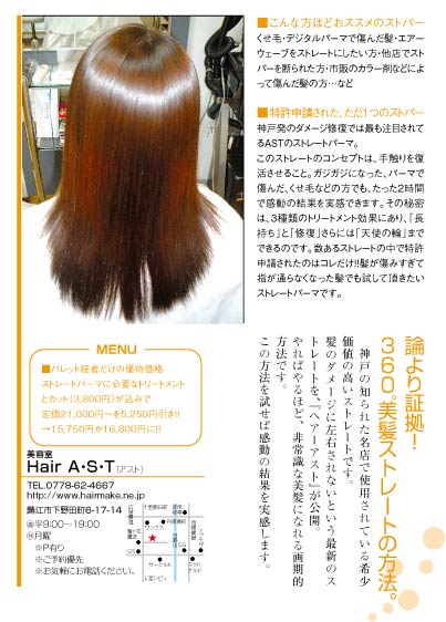 こだわりは、主にストレートパーマやヘアカラーの技術を通して、できるだけ多くの方に気持ち良くなって帰って頂く事。