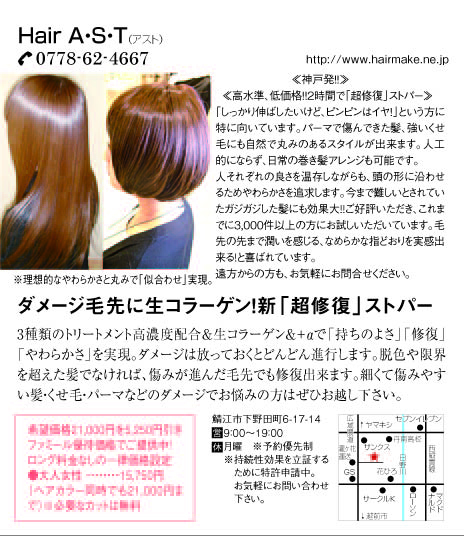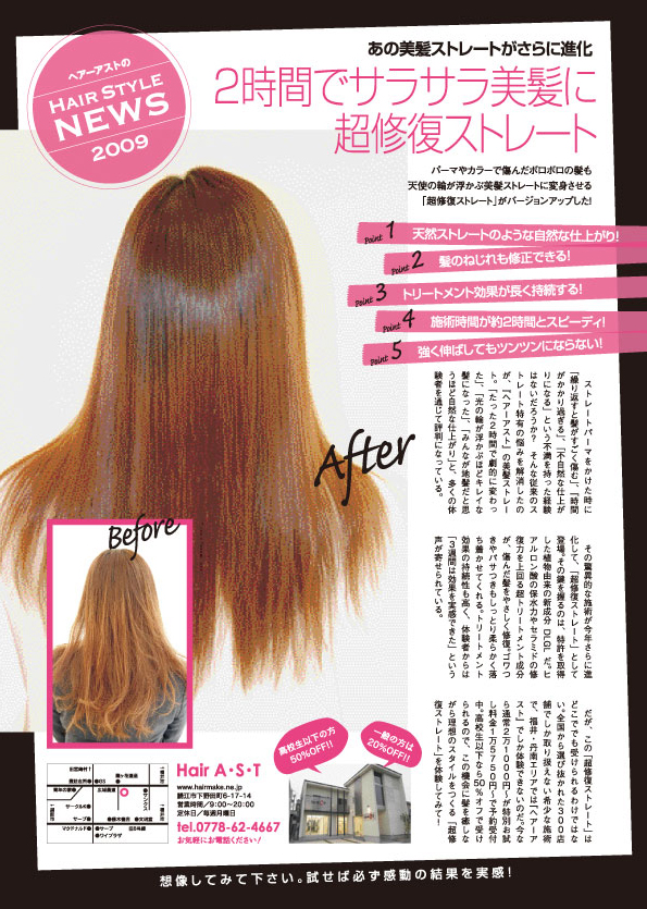 安心しておまかせください。ゆったりとした時間の中で、ダメージにこだわった薬剤の効果によって髪を心もリフレッシュ!!